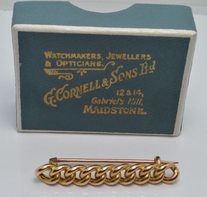 A 15ct gold curb link brooch, 3.4g
