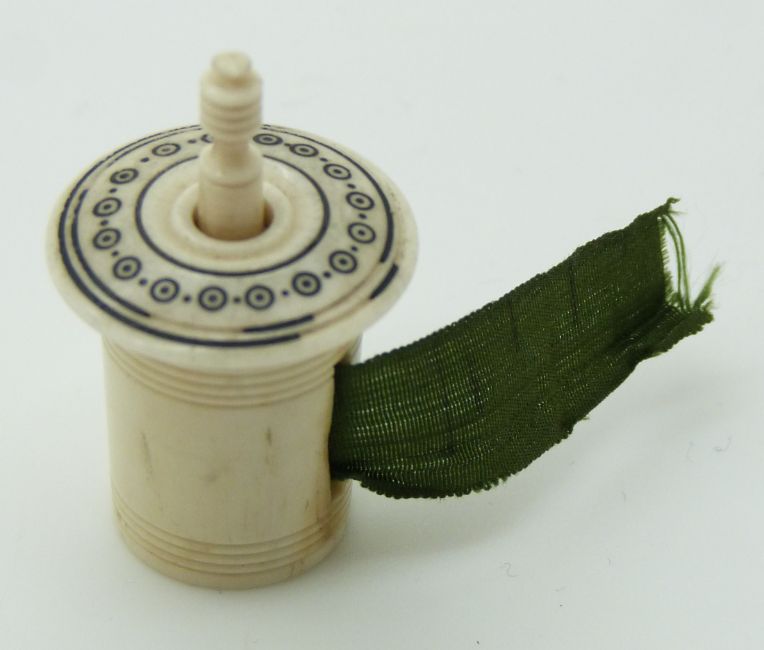 Four 19thC Indian Madras ware ivory turned thimble holders / pin cushions and tape measures, tallest 4cm