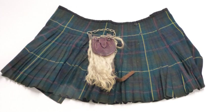 A children's kilt and sporran with white metal mounts