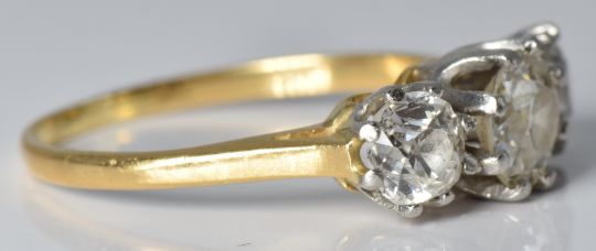 An 18ct gold ring set with three diamonds of approximately 0.6ct, 0.3ct & 0.3ct, 2.5g, size K