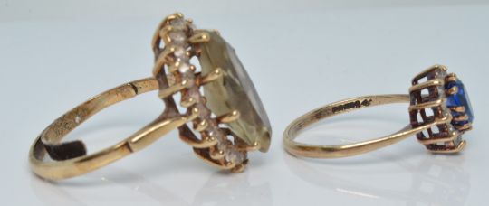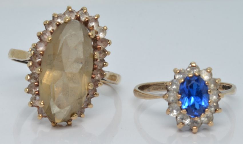 Two 9ct gold rings set with paste, 7.6g, size N and U