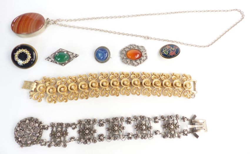 WITHDRAWN    A silver bracelet, silver brooch, silver pendant, brooches etc