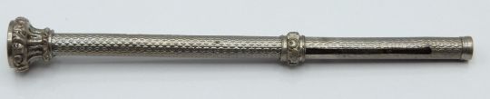 Victorian hallmarked silver purse in the form of a crocodile skin bag, London 1886 maker's mark AHJG, length 5cm, white metal pencil and three Charles Horner hallmarked silver buttons, Chester 1912