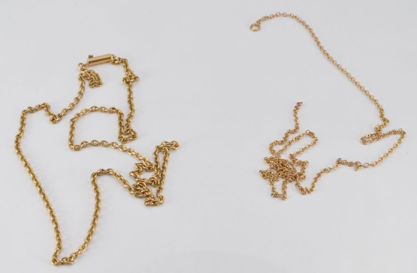 A 15ct gold necklace and a section of gold chain, 6.3g