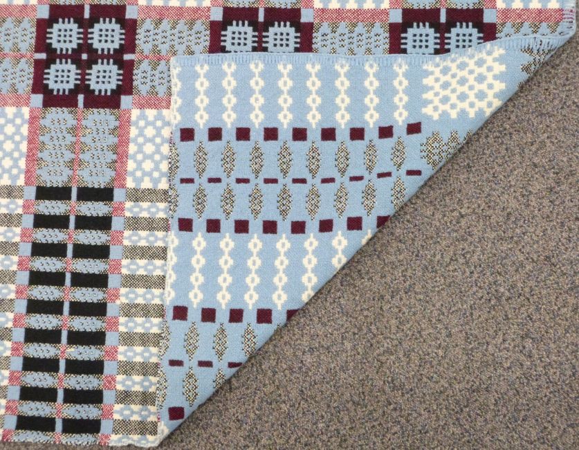Welsh tapestry woollen blanket with sky blue ground, 180 x 230cm