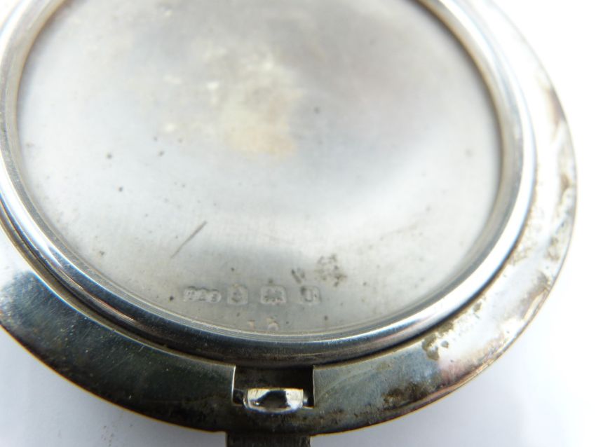 Art Deco hallmarked silver compact with engine turned decoration, Birmingham 1944, maker Turner & Simpson Ltd, diameter 72mm, weight 75g all in