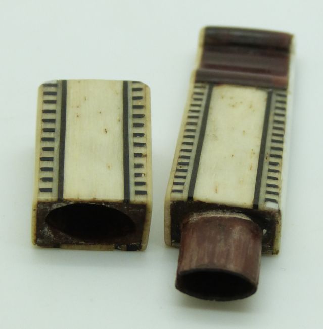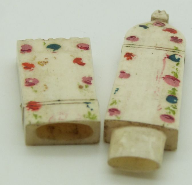 Three Georgian bone/ivory needle cases including a shoe with cut steel decoration, longest 8cm