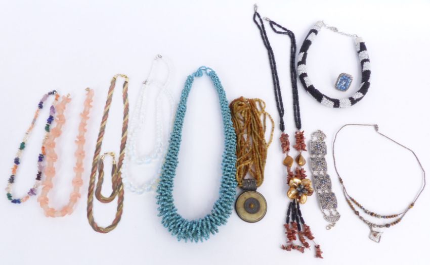 A large collection of costume jewellery including vintage necklaces, brooches etc