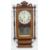A 19thC probably American wall clock, the painted Roman dial with breguet style steel hands, inlaid decoration to case, bobbin turned sides, carved pediment and parchment scroll carved design to base, the two train movement striking on a bell