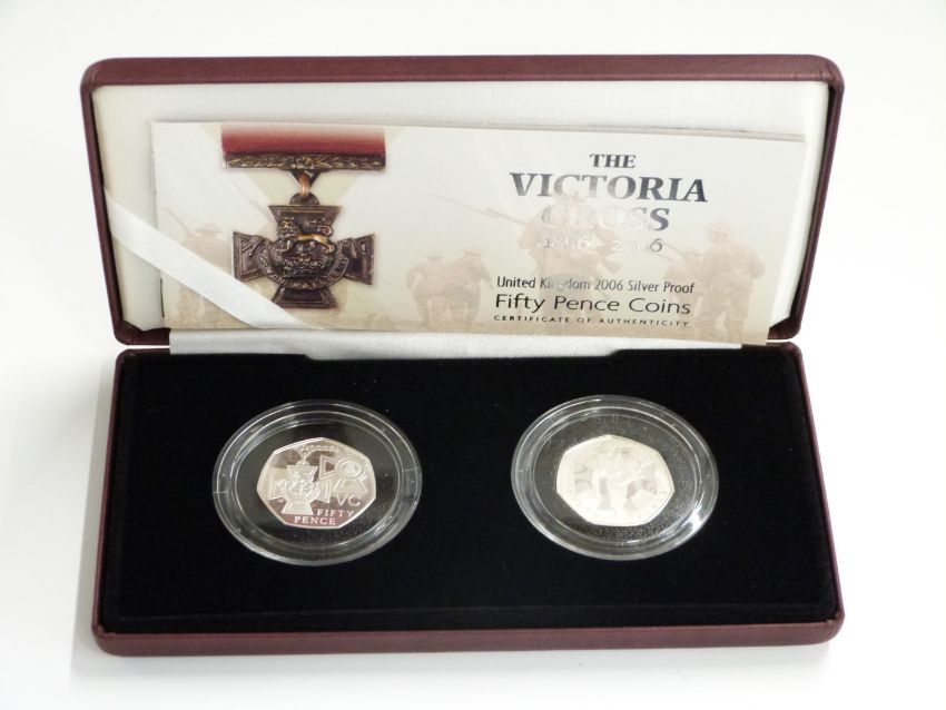 Three Royal Mint UK silver proof coin sets comprising Nelson Trafalgar two crown set, Brunel £2 pair and The 2006 Victoria Cross 50p set of two, all cased with certificates/booklets