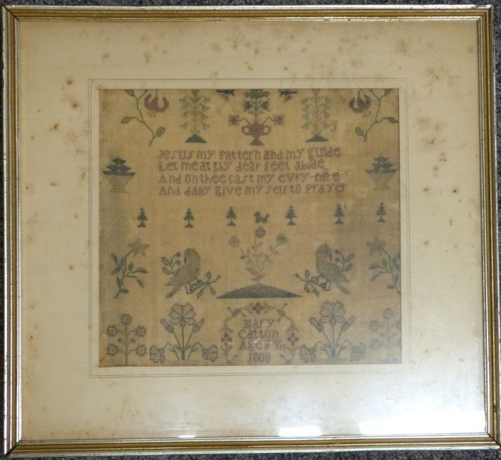 Two Georgian samplers, one by Mary Catton aged 11 years 1808, largest 38 x 32cm