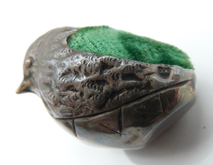 Hallmarked silver novelty pin cushion formed as a bird chick, import marks for Birmingham 1979, maker Ari D Norman, height 25mm