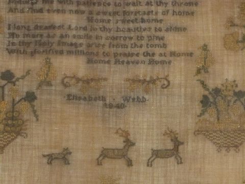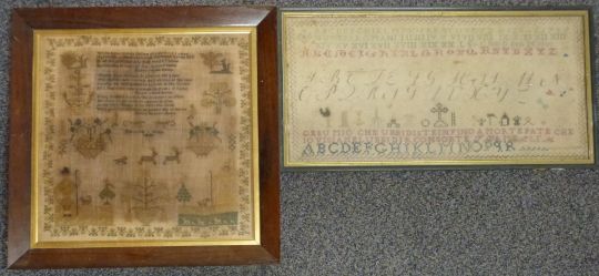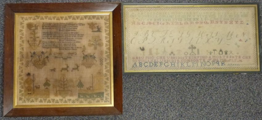 Two Victorian embroidery samplers, one Elizabeth Webb, 1846, largest 39 x 37cm