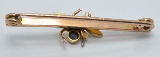 Edwardian brooch set with a sapphire and seed pearls in the form of a fly, length 3.5cm, 3.6g