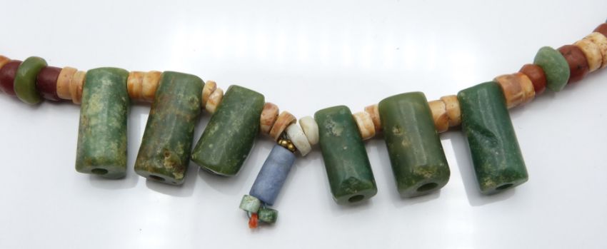 Ancient pre-Columbian Tairona carnelian agate and jasper stone beaded necklace