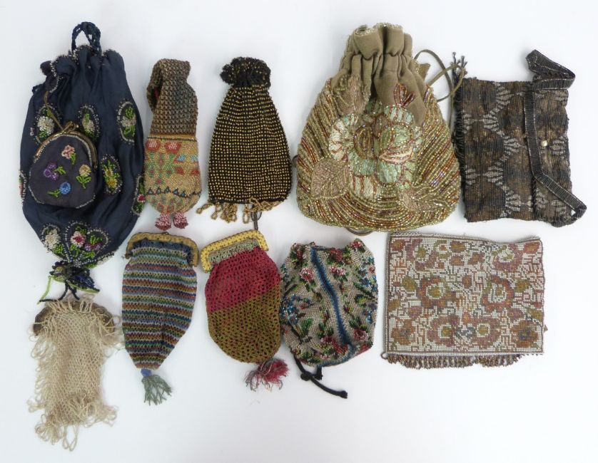Ten 19th/20thC beadwork purses/bags, some with ornate clasps, largest 15 x 18cm