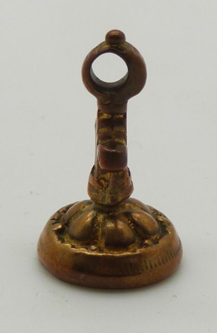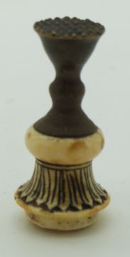 Ivory handled seal, white metal seal, brass seal and a small vice