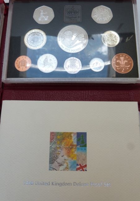 Royal Mint UK proof coin collections in deluxe cases with certificates, 1995-1998