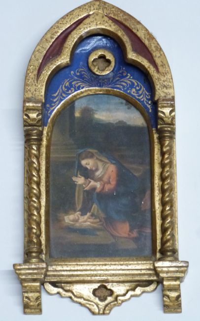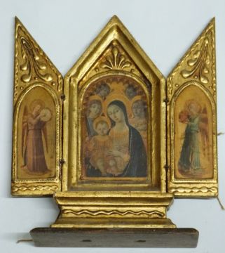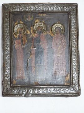 Five 19thC/20thC icons/reliquaries including one with embossed metal panels to doors, two opening triptych examples and another with embossed metal fittings, tallest 30cm