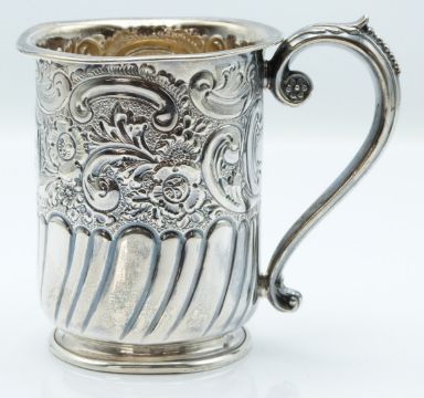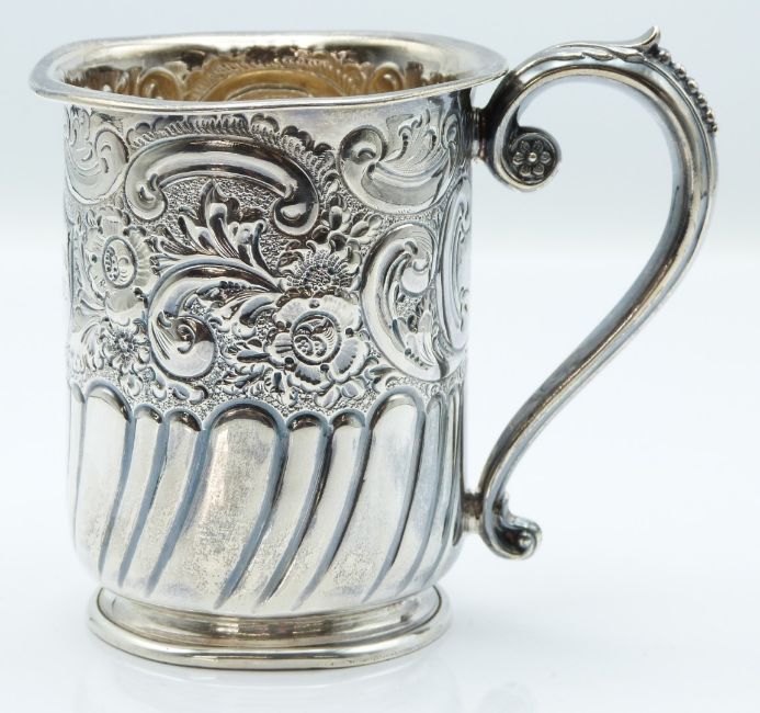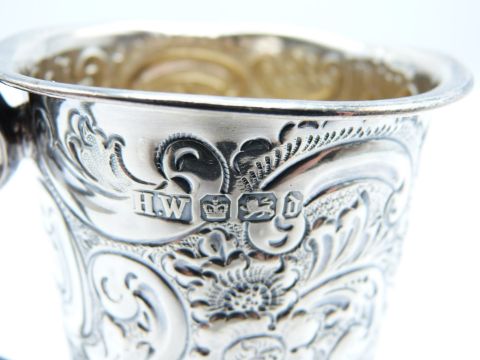 Victorian hallmarked silver tankard with embossed decoration, Sheffield 1896 maker Lee & Wigfull, height 9cm, weight 105g
