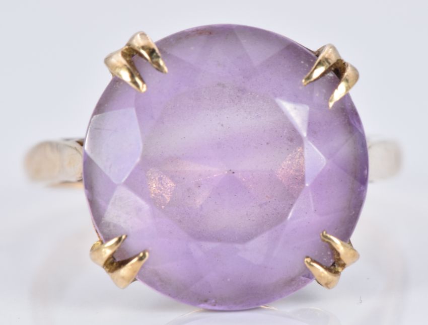 A 9ct gold ring set with a round cut amethyst, 4.7g, size O