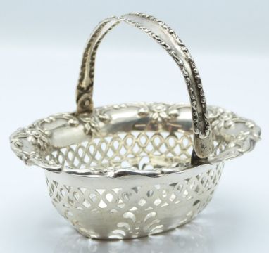 Pair of Edward VII hallmarked silver bon bon baskets with swing handles and pierced and embossed decoration, Birmingham 1904 maker Henry Matthews, width 10cm, weight 105g