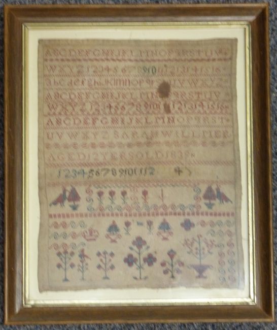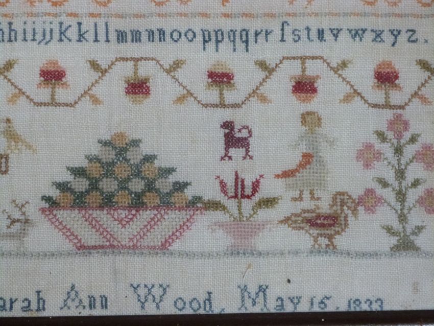 William IV embroidery sampler by Sarah Ann Wood 1833, and another of the same date, largest 29 x 32cm