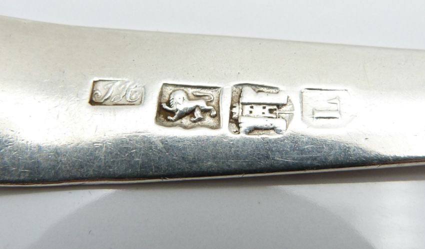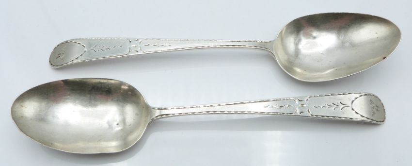 Exeter pair of provincial hallmarked silver table spoons with bright cut decoration, Exeter 1784, maker Joseph Hicks, length 21cm, weight 104g