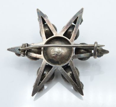 Victorian hallmarked silver star brooch set with foiled paste, Birmingham 1892, diameter 3.5cm