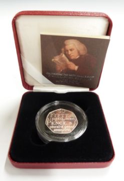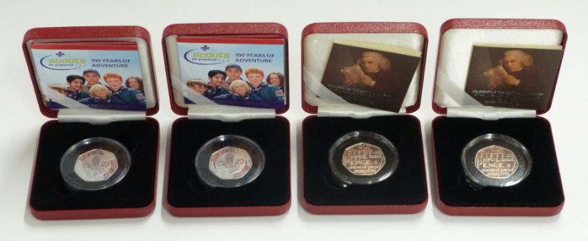 Four Royal Mint silver proof 50p coins comprising two 2005 Samuel Johnson and two 2007 Scouts examples, cased with certificates