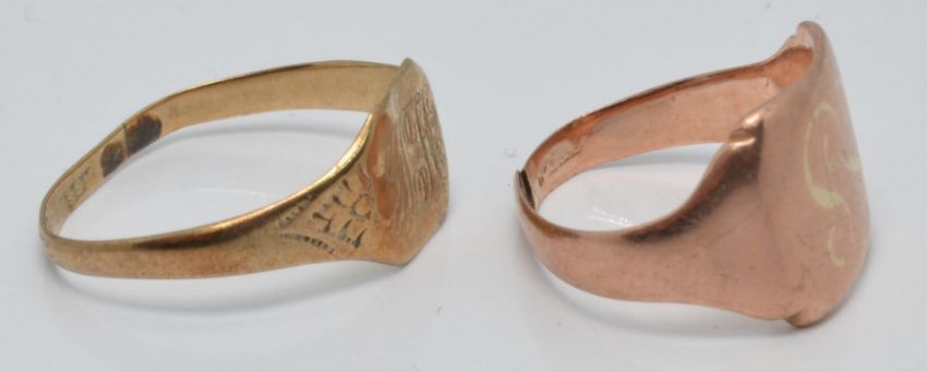 Two 9ct gold signet rings, 3g