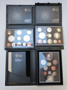 Three Royal Mint United Kingdom proof coin sets with certificates and outer packaging, two 2008 and a 2012 (Ian Rank-Broadley Collection)