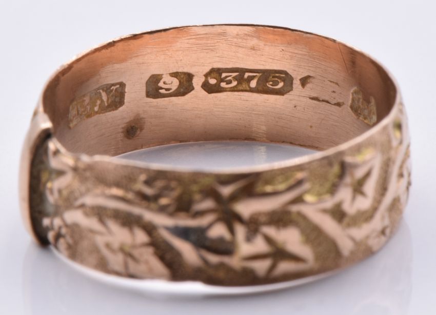 Victorian 9ct rose gold ring with embossed ivy decoration, Birmingham 1892, 2.3g, size N