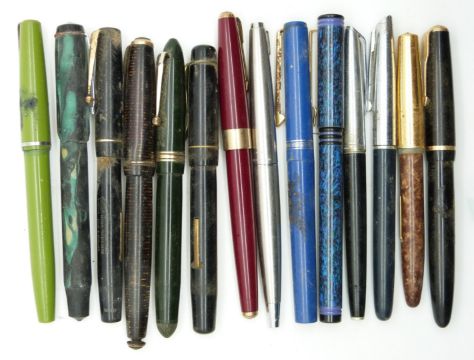 Eighteen various fountain pens and pen sets including Waterman, Parker Duofold with 14K gold nib, Parker 17 Lady, Paker 17, Parker Vacumatic, Sheaffer White Dot with nib marked palladium silver, Parker 61, Swan, The Nova Pen etc, some in original boxes