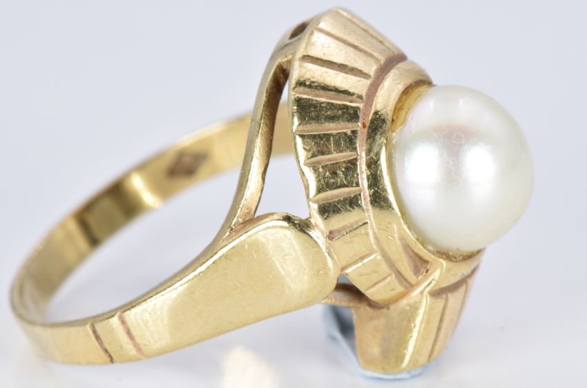 A 9ct gold ring set with a pearl, 5.4g, size P