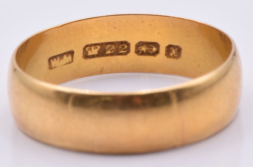 A 22ct gold wedding band/ ring, Birmingham 1897, 5.5g, size W/X
