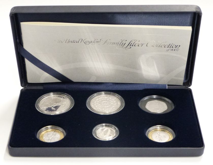 Royal Mint UK 2007 Family Silver Collection, comprising five silver proof coins, cased with booklet