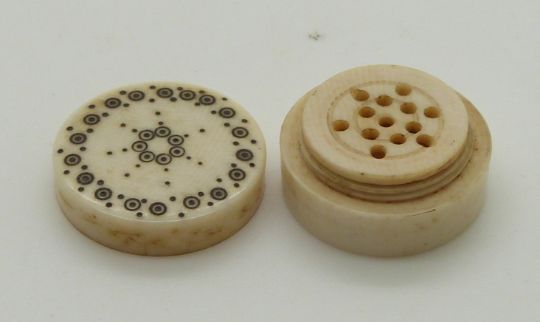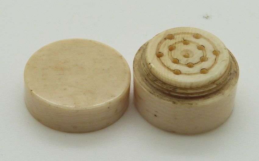 Three 19thC Indian Madras ware ivory turned vinaigrettes, largest diameter 2.2cm