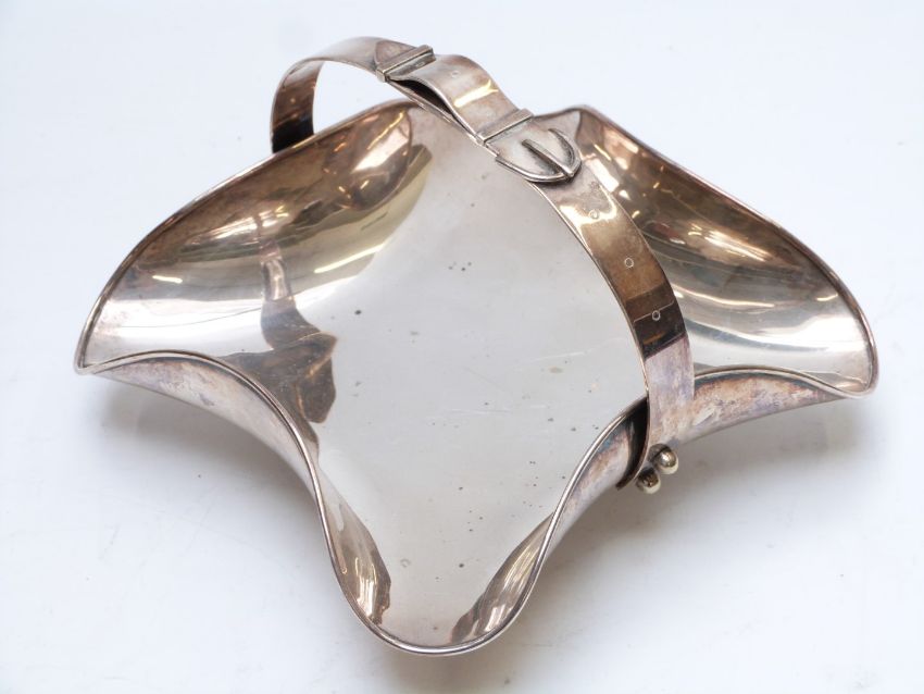 Silver plated cutlery including apostle spoons, wick scissors and basket with buckle handle, width 20cm