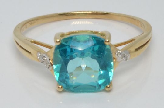 A 10k gold ring set with a Batalha topaz and diamonds, with certificate, size U