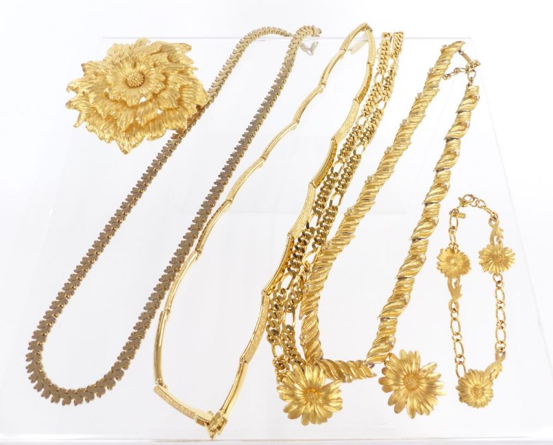 A collection of jewellery including Monet brooches, necklaces, bracelets, Trifari brooch etc
