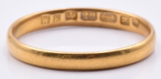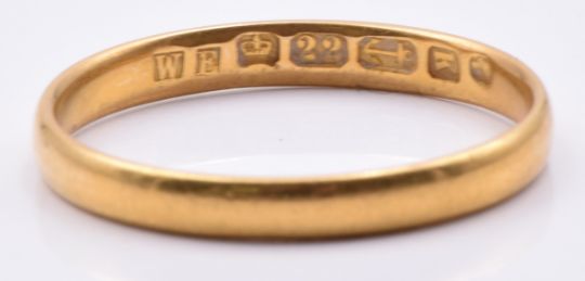 Victorian 22ct gold wedding band/ ring, Birmingham 1859, 1.9g, size L