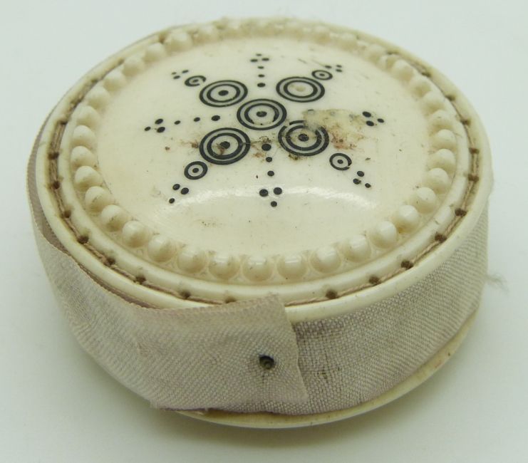 Three 19thC Indian Madras ware ivory pin cushions, largest diameter 4.2cm