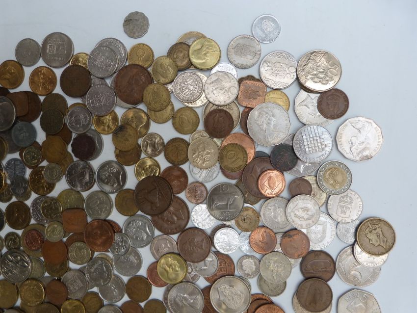 A collection of world coinage, 19thC onwards, but largely holiday change pre-euro etc, includes Channel Islands, Isle of Man, Irish Free State