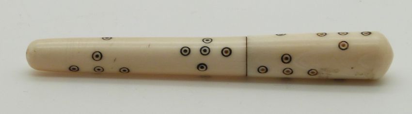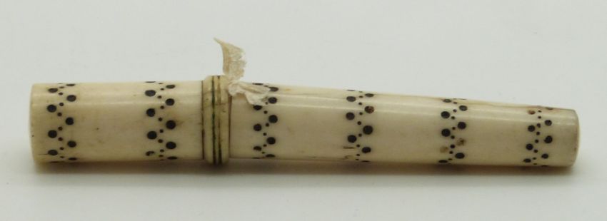 Three 19thC turned ivory Indian Madras ware needle cases, longest 8.5cm