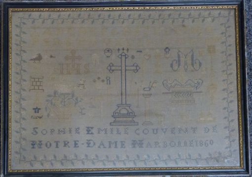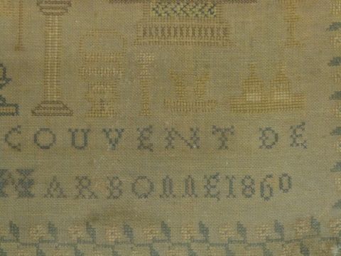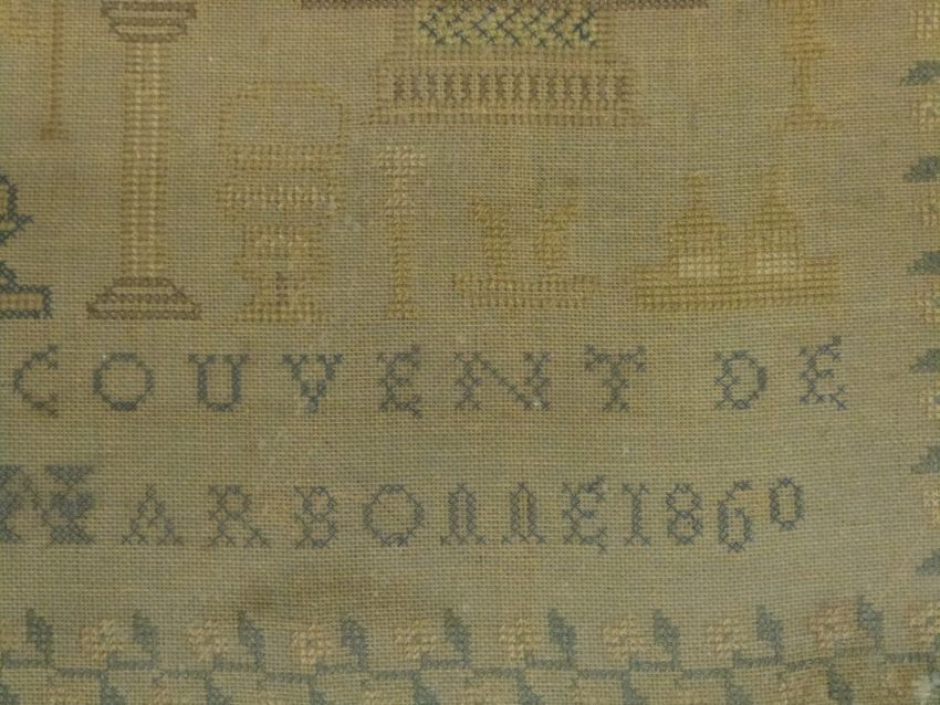 19thC French embroidery sampler by Sophie Emile Couvent de Notre Dame, Narbonne 1860, 32 x 46cm