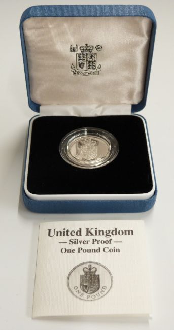 Five Royal Mint silver proof £1 coins, 1983, 1988, 1990, 1991 and 1992, all cased with certificates