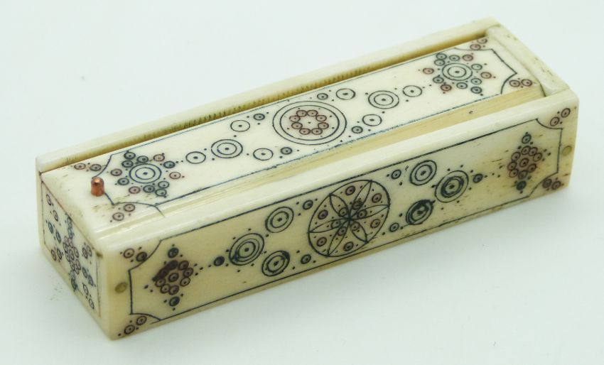 A 19thC Indian Madras ware bone miniature dominoes set