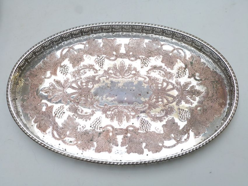 Quantity of silver plate to include oval galleried tray, length 40cm, Walker & Hall teaset, cased cutlery etc