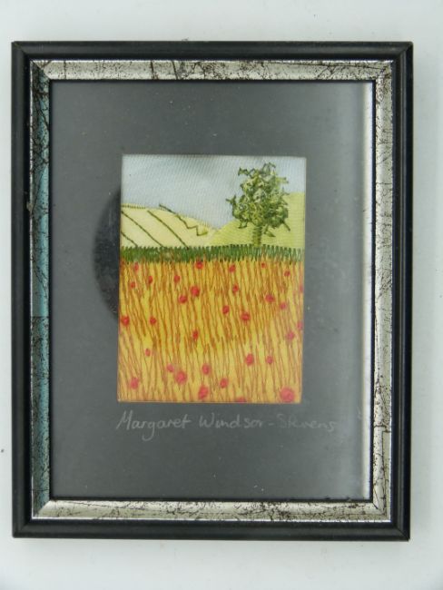 Margaret Windsor Stevens, five miniature embroideries, most 5.5 x 4.5cm
